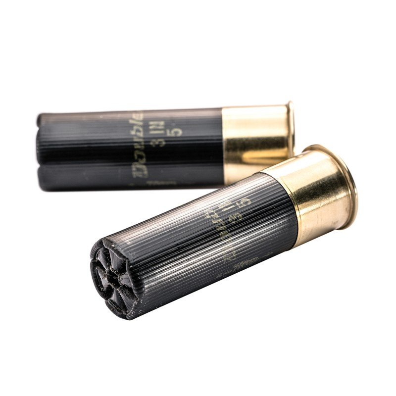 Verfügbar in den Schrotgrößen 5,1 mm, 6,8 mm und 7,6 mm, wobei letztere als Buck-Shot-Variante besonders hohe Schockwirkung entwickelt. Packung zu 10 Patronen.
