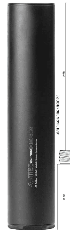 Der A-TEC Hertz 150 ist ein vielseitiger Schalldämpfer des schwedischen Herstellers A-TEC, der sich durch seine robuste Hybridbauweise und Magnum-Tauglichkeit auszeichnet. Mit einer Gesamtlänge von 230 Millimetern und einem Gewicht von 398 Gramm positioniert sich das Modell im mittleren Segment zwischen kompakten und maximal dämpfenden Lösungen.
