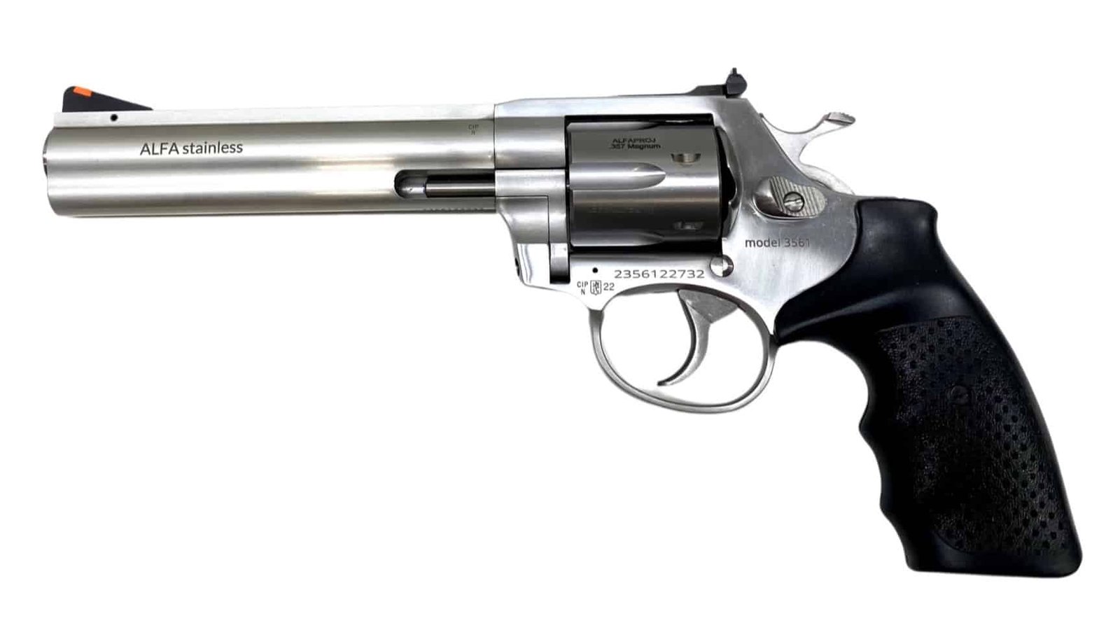 Der ALFA Proj 3561 ist ein Revolver des Herstellers ALFA Proj im Kaliber .357 Magnum mit 6-schüssiger Trommel, 6" (15,2 cm) Lauf und verstellbarer Visierung, verfügbar in blued/black oder stainless Finish. Mit rund 1.150 g Gewicht, schwarzem Gummigriff (optionale Holzgriffschalen), Lieferung im Koffer und in einigen Ausführungen Single-/Double-Action-Abzug eignet er sich für Jagd und sportliches Schießen.