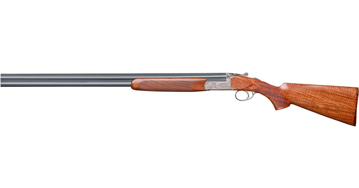 Die Antonio Zoli Nobile ist eine klassische Bockdoppelflinte, die Eleganz und präzise Handwerkskunst verbindet. Das Modell richtet sich an Jäger und anspruchsvolle Schützen, die Wert auf eine hochwertige Verarbeitung, feine Gravurarbeit und eine durchdachte Funktionalität legen. Charakteristisch sind die englisch-angelegte Arabesken-Gravur, eine Churchill-Visierschiene mit klarer Linienführung sowie eine massiv ausgeführte Seitenschiene, die der Waffe eine harmonische Optik und sichere Handlage verleiht.