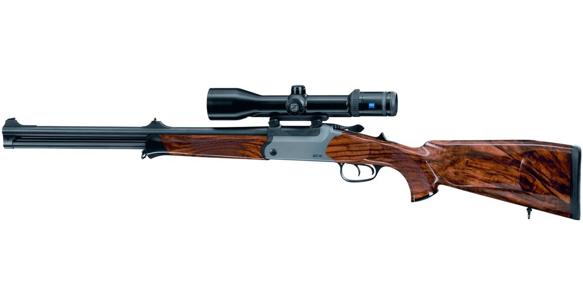 - Waffentyp / Kategorie: Bockdrilling (2 Kugelläufe + 1 Schrotlauf)