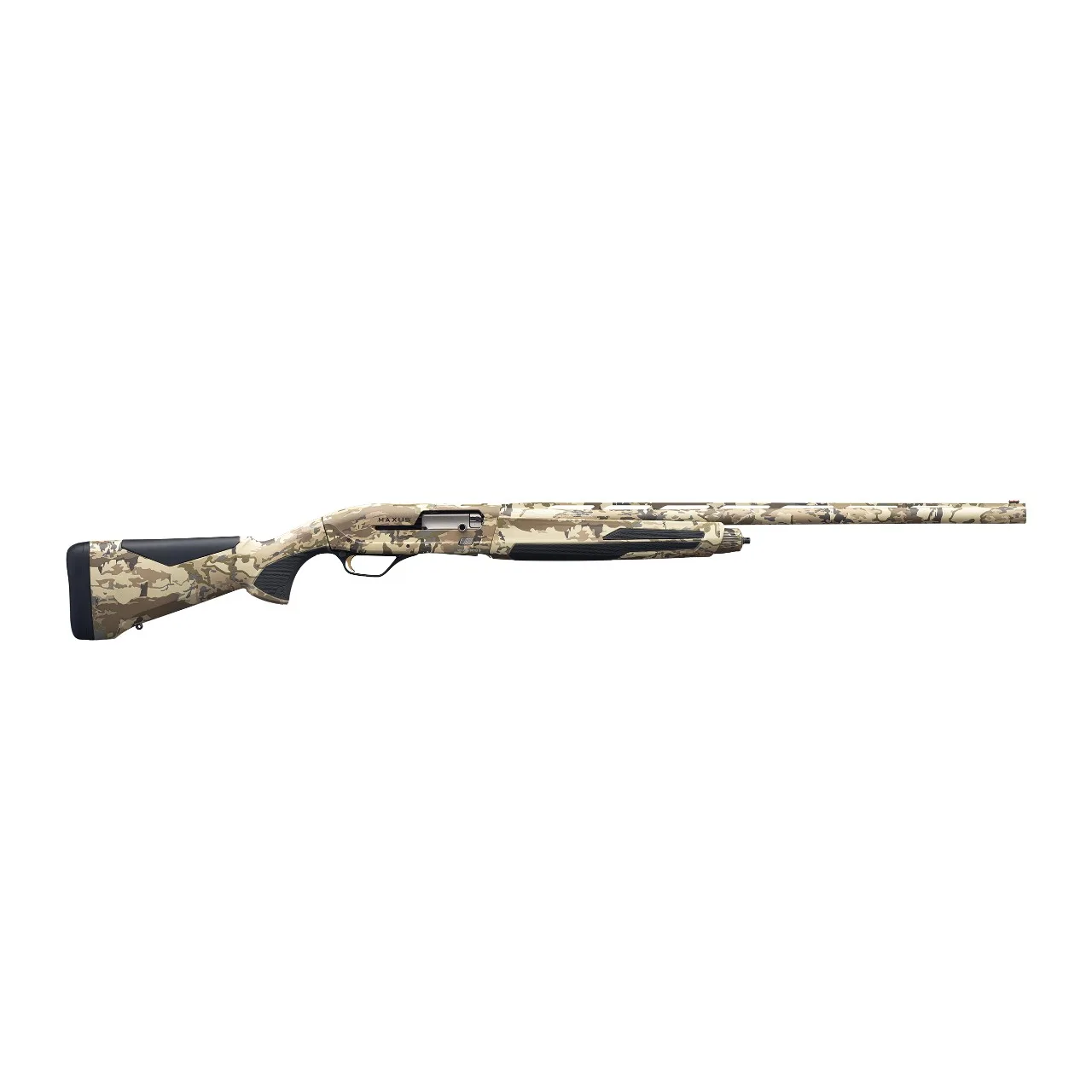 Die Browning Maxus 2 Camo Max5 trägt das bekannte Realtree Max-5 Tarnmuster auf Schaft und Lauf. Sie ist ebenfalls im Kaliber 12/89 erhältlich, wahlweise mit 71-cm- oder 76-cm-Lauf, und wiegt 3,3 kg. Wasserjäger, die auf Enten und Gänse ansitzen, profitieren von der optischen Tarnung und der Super-Magnum-Kammer für schwere Stahlschrotladungen.