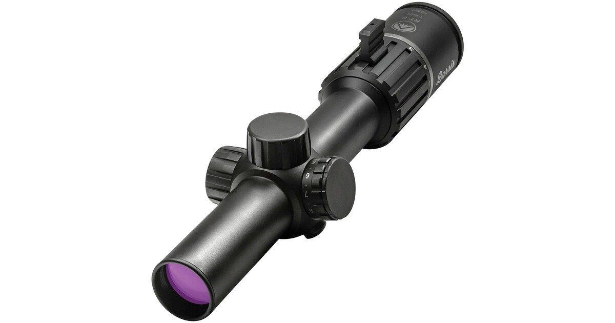 Das Burris RT-6 1-6x24 ist ein variables Zielfernrohr des Herstellers Burris mit 30-mm-Mittelrohr, ausgelegt für dynamische Jagdsituationen wie Drückjagd sowie sportliches Schießen – besonders geeignet für AR-15-Waffen. Charakteristische Merkmale sind die kompakte Bauweise (262 mm Länge, 720 g), große Eye-Box (84–102 mm Augenabstand), Sehfeld von 32 m/100 m bei 1-facher bis 5,6 m/100 m bei 6-facher Vergrößerung, präzise Klickverstellung (0,5 MOA/Klick), beleuchtetes 4A-Absehen in zweiter Bildebene sowie Stickstoff-Füllung für Beschlagfreiheit und Wasserdichtigkeit. Optional ist ein Ballistic-AR-Absehen für Flugbahnkompensation bis 600 m verfügbar; ein Throw-Lever ermöglicht schnellen Vergrößerungswechsel.