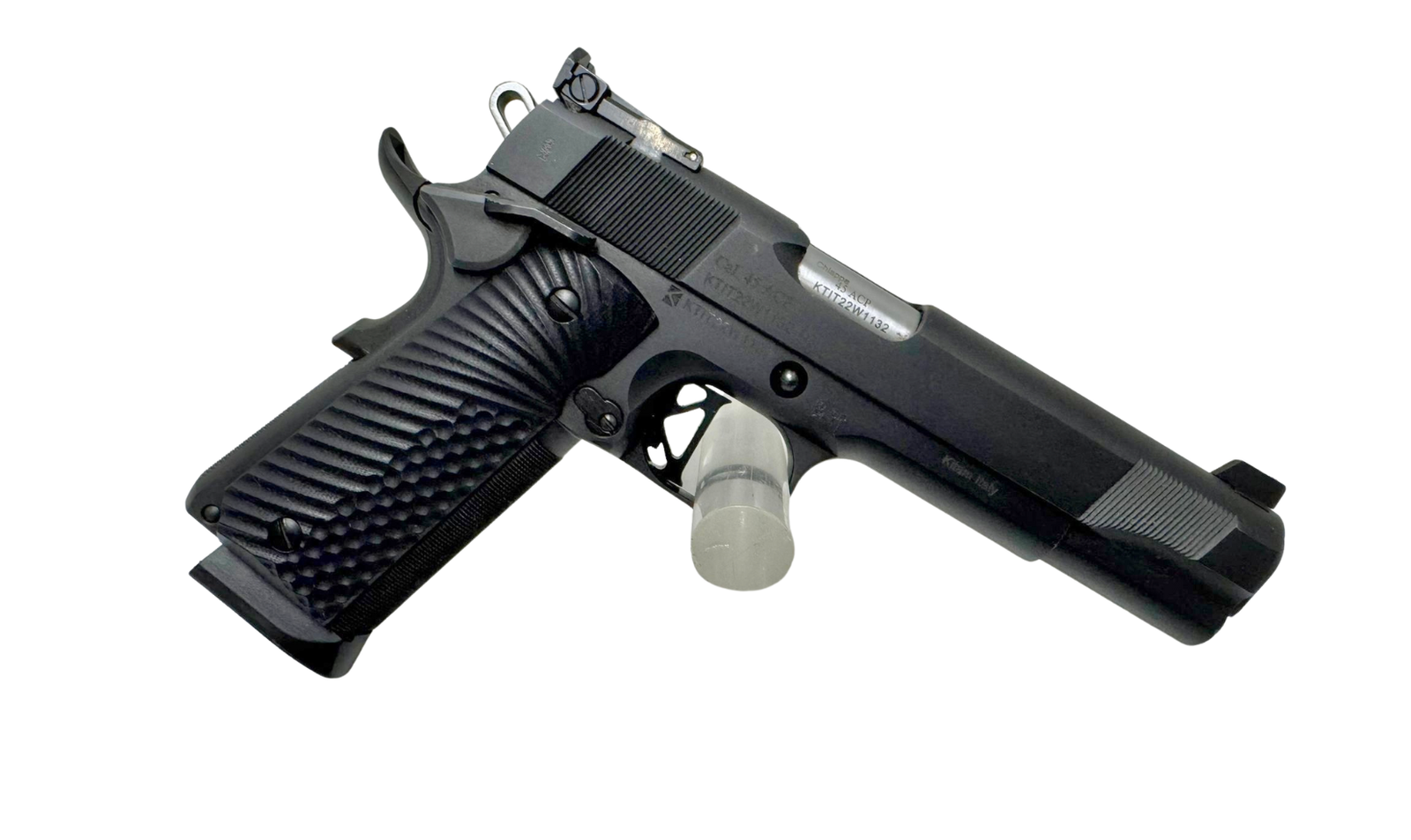 | Besonderheiten | Kompatibel mit Standard-1911-Magazinen (.45 ACP), komplett in Italien gefertigt |