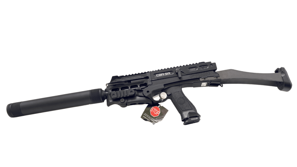 Die CHIAPPA CBR-9 ist eine Selbstladebüchse im Kaliber 9mm Luger, die auf der CBR-9 Black Rhino Pistol basiert und durch ihre Konstruktion als Langwaffe keinen Voreintrag für eine Kurzwaffe beansprucht. Der fest arretierte Teleskopschaft und ein Faux Suppressor verlängern den Lauf auf 22,5 cm, wodurch die Waffe die Anforderungen einer Langwaffe erfüllt und eine Gesamtlänge von 63 cm erreicht.
