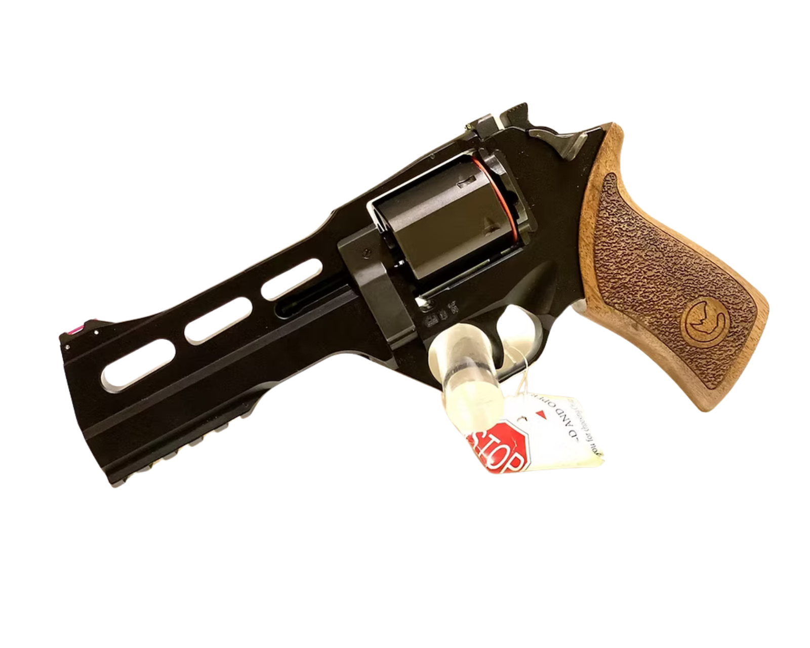 Chiappa Arms, ein traditionsreiches, familiengeführtes Unternehmen aus Norditalien, bietet den Rhino in mehreren Ausführungen und Kalibern an. Die Modellpalette reicht von kompakten 4″-Varianten über 5″- und 6″-Versionen bis zu speziellen „Charging Rhino“‑Ausführungen, die für IPSC/Praktische Wettkämpfe vorbereitet sind. Verfügbare Materialien und Oberflächen reichen von brünierten und nickelnen Ausführungen über Cerakote bis zu goldbeschichteten Varianten; Griffschalen sind klassisch in Walnussholz oder als robuste Laminat‑Ausführung erhältlich.