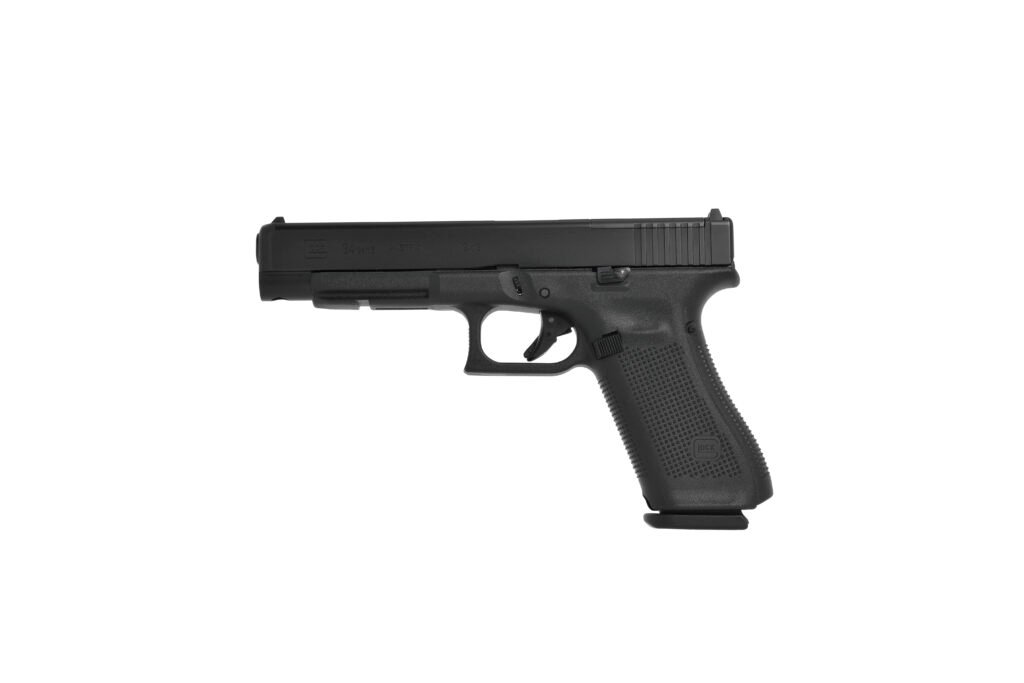 Die Glock 34 ist das Arbeitstier in modernen Schießsportdisziplinen. In IPSC Production Optics und IPSC Standard mit ihrer Kombination aus Mehrfachzielen, Bewegungsschießen und schnellen Übergängen spielt die Glock 34 ihre Stärken aus. Die verlängerte Visierlinie von etwa 135 mm ermöglicht schnellere Zielerfassung, während das Safe-Action-Abzugssystem mit rund 2,0 Kilogramm Abzugsgewicht – sportlich erleichtert gegenüber der Glock 17 – präzise Schüsse unter Druck ermöglicht.