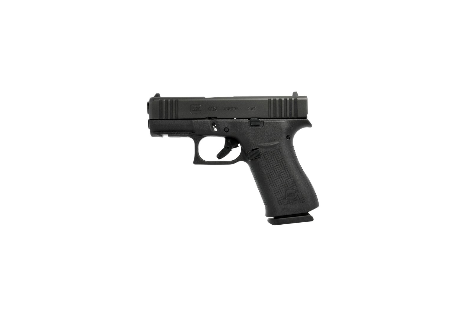 Die Glock 43X ist eine kompakte Selbstladepistole im Kaliber 9 mm Luger aus der Slimline-Serie, die sich durch ihren verlängerten Rahmen bei schmaler Bauweise besonders für verdecktes Tragen eignet.