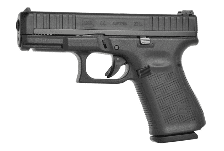 Die Glock 44 ist eine kompakte, halbautomatische Randfeuerpistole im Kaliber .22 l.r., die gezielt als kostengünstige Trainings- und Freizeitwaffe konzipiert ist. Sie verbindet das bewährte Glock-Safe-Action-System mit einem leichten Aufbau und einer ergonomischen Griffgeometrie, die dem Griffstück der Glock 19 Gen5 entspricht. Die Bedienelemente sind beidseitig ausgelegt, was die Handhabung für Links- und Rechtsschützen erleichtert.