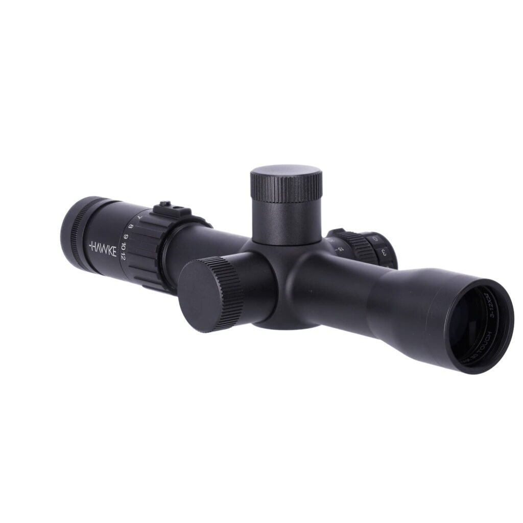 Das Hawke Airmax Touch ist ein Zielfernrohr des Herstellers Hawke, speziell konzipiert für Luftgewehre und rückstoßarme Waffen, mit 3-12-facher variabler Vergrößerung und 32-mm-Objektiv – ausgelegt für Sportschießen und Luftgewehrjagd. Charakteristische Merkmale sind das durchdachte AMX-Absehen (optional beleuchtet) mit Mil-Dot-System, halben Mil-Markierungen auf dem Vertikalbalken, kalibrierten Balken für 0,5–2 Mil und Hohlbalken zur Entfernungsbestimmung. Die kompakte Bauweise ohne Augenabstand ermöglicht flexible Montage auf verschiedenen Luftgewehrplattformen.