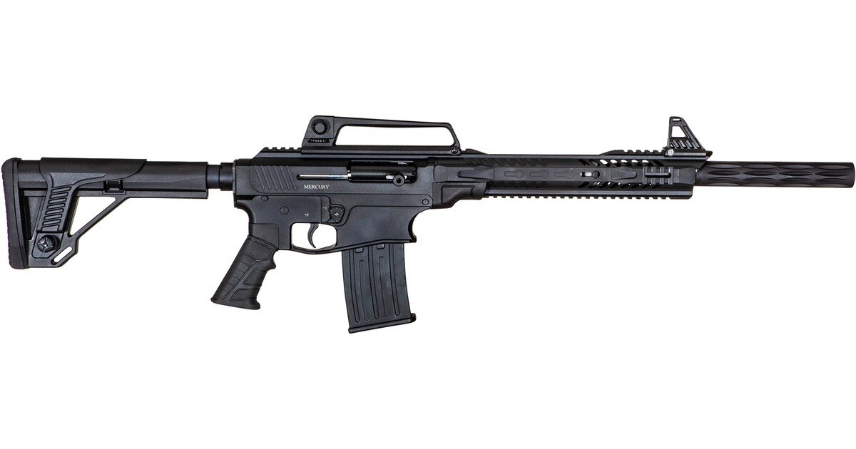 Die Mercury DF 12 ist eine moderne, halbautomatische Flinte im Kaliber 12, ausgelegt für Jagd und Sportschießen. Sie nutzt ein Gas-System und bietet einen witterungsbeständigen, verchromten Stahllauf, einen taktischen Schaft mit Pistolengriff und Gummischaftkappe zur Rückstoßminderung sowie Picatinny‑Schienen, verstellbare Kimme und Korn, Chokeeinsätze (Zylinder bis 1/2) für Stahlschrot sowie Mündungsschoner, Riemenbügel und einen gepolsterten Transportkoffer.