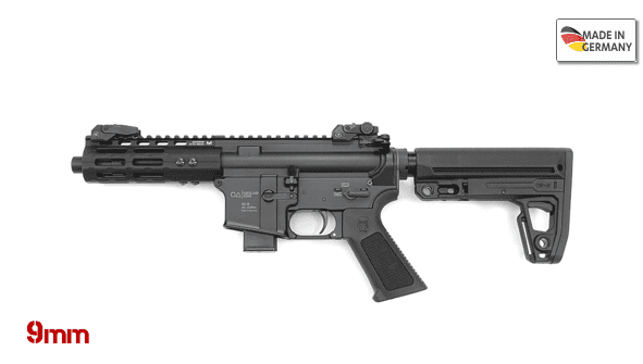 Die Oberland Arms OA-15 M9 SHORT ist eine Selbstladebüchse im Pistolenkaliber 9 mm Luger, die sich besonders für dynamische Disziplinen im Jagd- und Schießsport eignet. Die Kurzwaffe basiert auf dem bewährten AR-15-System und vereint hochwertige Komponenten mit engen Fertigungstoleranzen nach Made-in-Germany-Standards.