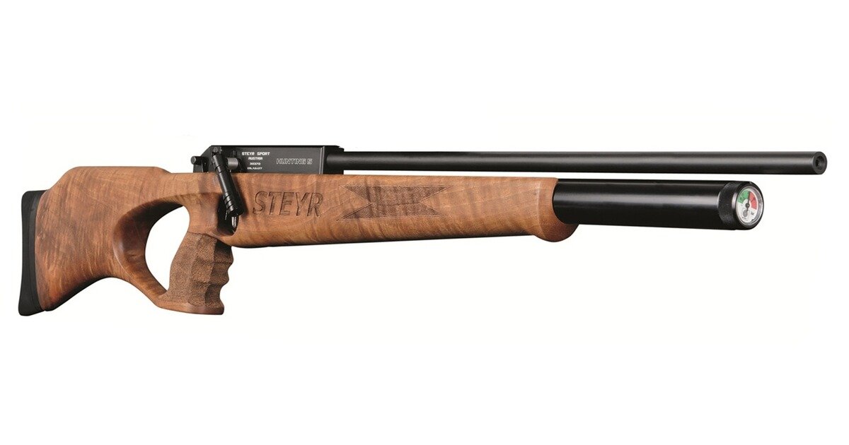 - Vorteile: Sehr kontrollierte Schussabgabe dank STEYR-Kolbensystem, hohe Präzision durch langen 650 mm Lauf, sichere Magazinführung (kein im Lauf verbleibendes Geschoss bei entnommenem Magazin), robuste Magazinabdichtung und angenehme Ergonomie mit optionalem Nussholz-Lochschaft.
