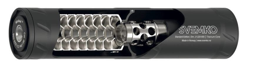 Modularer Aufbau: Der Schalldämpfer besteht aus einer robusten Außeneinheit und einem Titan-Innenmodul (Ti6Al4V). Das Innenmodul ist für die eigentliche Schalldämpfung verantwortlich und lässt sich zur Reinigung einfach herausschrauben.